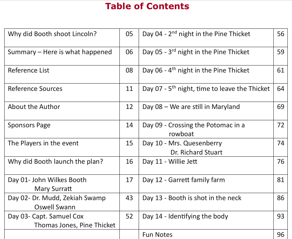 You will discover that John Wilkes Booth was a talented stage performer. He was fit, handsome, a lady’s man, wealthy, and arrogant. He died at age 26 with 4 photographs of women friends in his vest pocket. He never married and probably had no descendants. His genealogy ended with him. He planned for months to kidnap President Lincoln and transfer him through Southern Maryland to Richmond, Virginia, the headquarters of the Confederate States of America. The South would trade Lincoln for the 400,000 captured soldiers, being held in northern prisons. That plot was cancelled when the South surrendered, ending the Civil War. After a week, Booth made a new plan to kill Lincoln himself. His crew would kill Vice President Johnson, Secretary of State Seward, and General Ulysses Grant, all at 10:15 the same evening. The moment he pulled the trigger of his single-shot derringer, he was on the run. He was convinced he would be the hero of the South. This eBook is the chronology of the 13 days he was on the run.