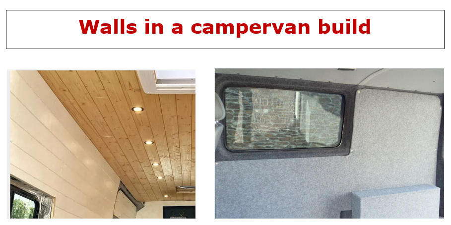 Research: What we found - Builders cover the walls of a campervan with various materials. They use wood slats, shiplap, plywood, Polyvinyl chloride (PVC) sheets, pegboard, and automotive carpet. Each of the materials has its advantages. Wallcoverings are the builder's choice.